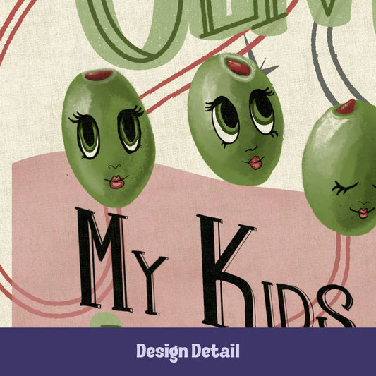 Funny Weird Friends Tea Towel with Retro Olive Pun — Mid-Century Kitchen